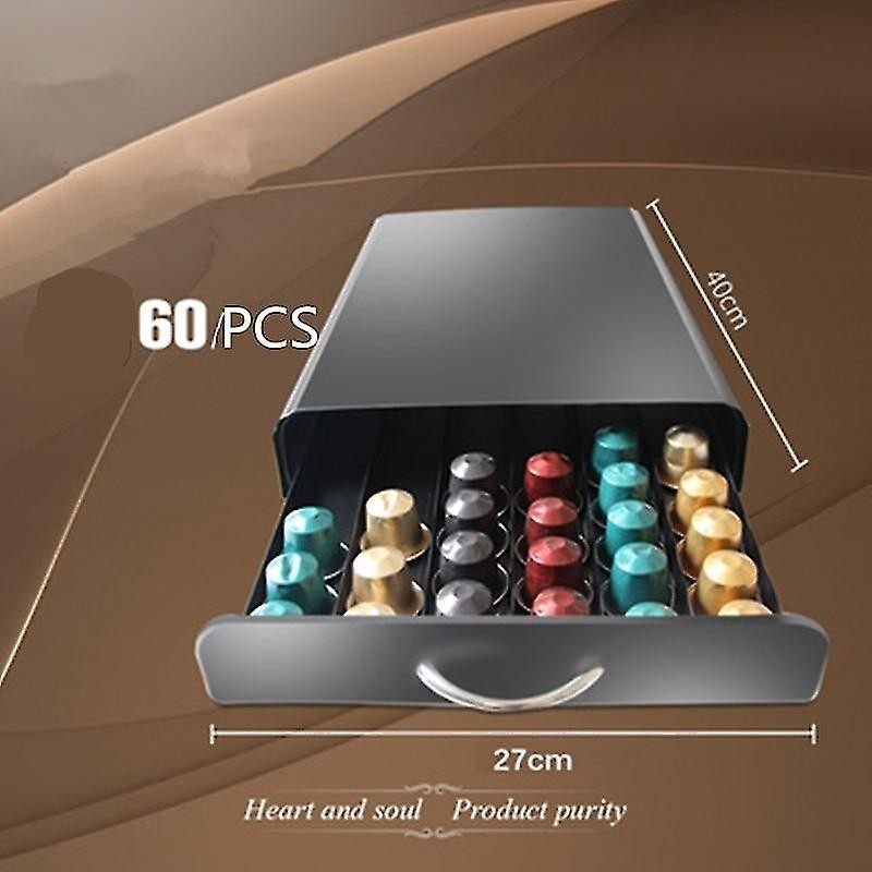 Κουτί συρταριού κάψουλας 60 τεμαχίων, μεταλλική βάση αποθήκευσης για καφετιέρες | Σετ καφετιέρας