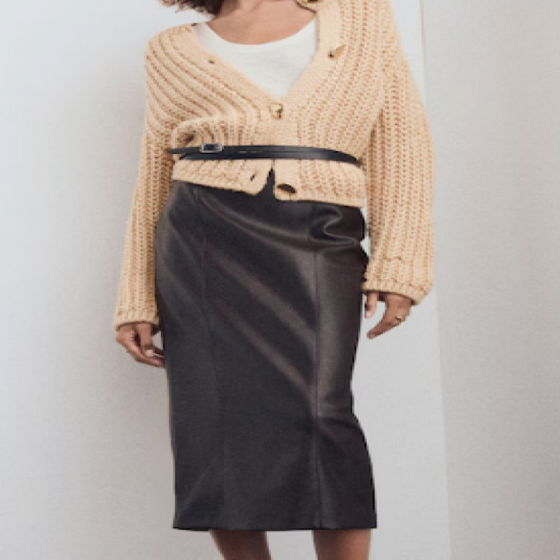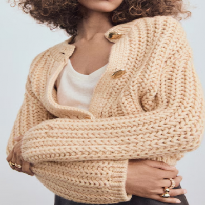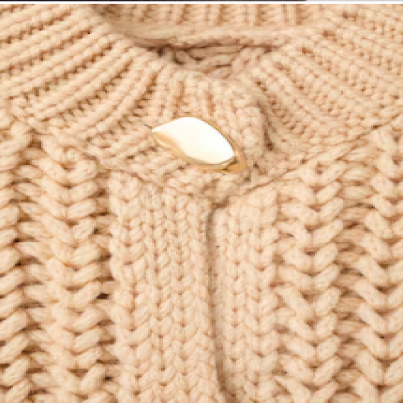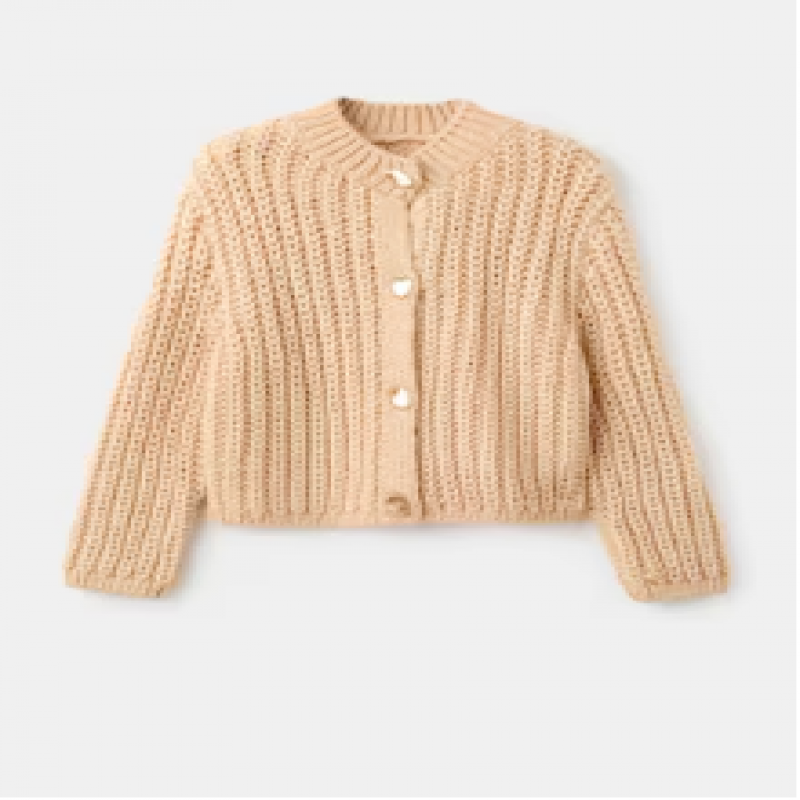 Kalın triko kumaştan üretilmiş bu düz tasarım, yuvarlak yaka ve uzun kollara sahiptir. Ön kapamayı süsleyen mücevher görünümlü düğmeler, belirgin bir dokunuş katıyor