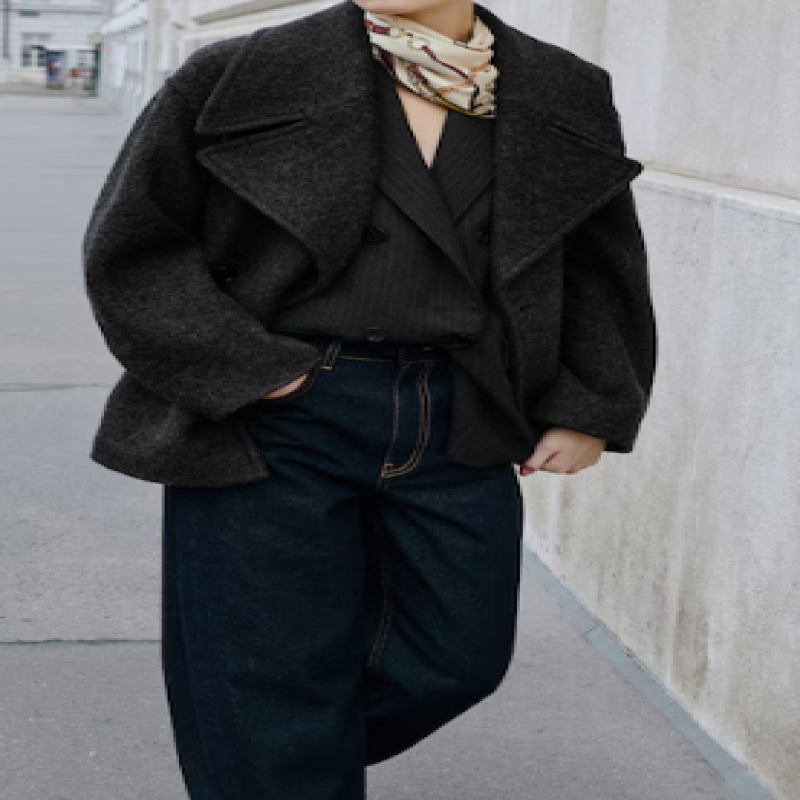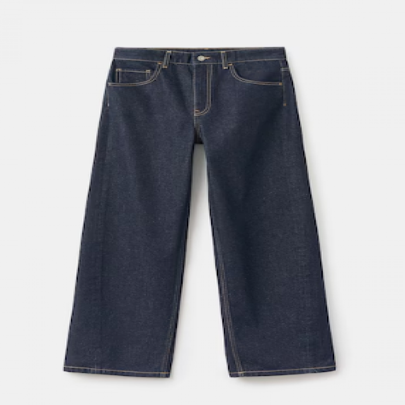 Pamuklu denim kumaş. Rinse wash. Balon tasarım. Barrel kesim. Uzun tasarım. Orta bel. Kemer halkaları. Beş cep. Ön fermuar ve düğme kapama.