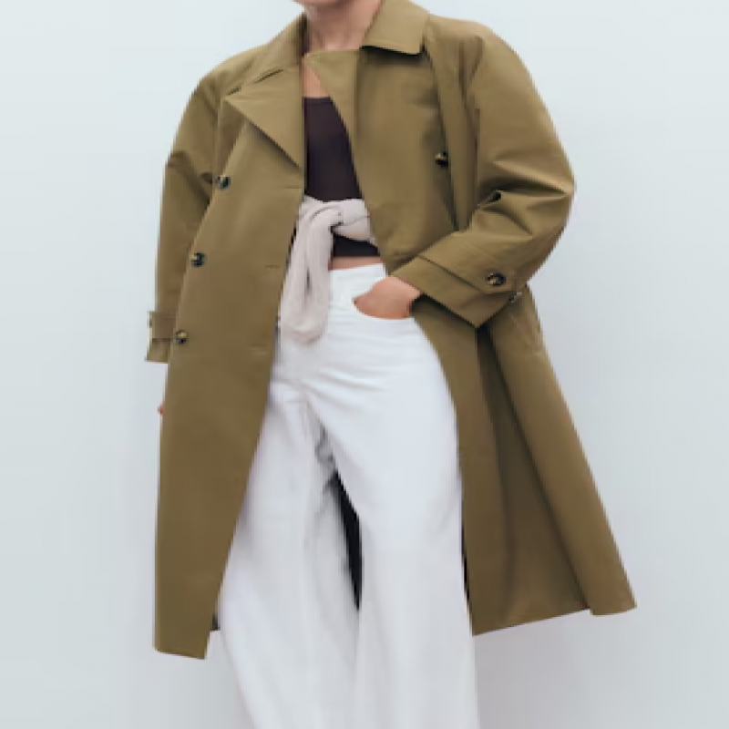 Pamuklu kumaştan üretilmiş bu uzun ve düz tasarım, geniş yaka ile oversize bir stil sunuyor. Uzun düğmeli kollar, çıkarılabilir kemer, iki yan cep ve çift düğmeli kapama içeriyor. Bu ürün, gardırobun olmazsa olmaz bir parçasıdır