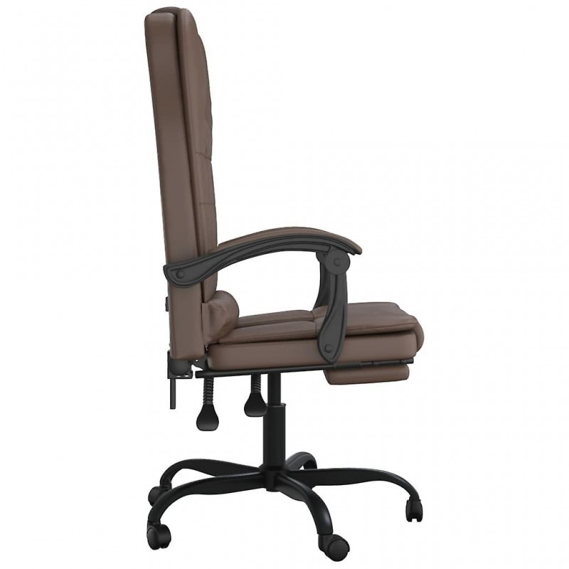 Με τον μινιμαλιστικό σχεδιασμό της, αυτή η μοντέρνα καρέκλα γραφείου μασάζ συνδυάζει κομψότητα και άνεση και θα τραβήξει την προσοχή στον χώρο εργασίας σας. Ανθεκτικό δέρμα PU: Το δέρμα PU υψηλής ποιότητας είναι ένα εξαιρετικά ανθεκτικό υλικό. Είναι απωθητικό της βρωμιάς και μπορεί εύκολα να καθαριστεί με ένα υγρό πανί. Η λεία επιφάνεια της δίνει την ομορφιά του γνήσιου δέρματος και μια πολυτελή εμφάνιση. Λειτουργία μασάζ: Το σημείο μασάζ στην πλάτη μειώνει αποτελεσματικά την κόπωση για πιο χαλαρή εργασία. Ρυθμιζόμενη πλάτη και ύψος: Η καρέκλα διαθέτει λειτουργία κλίσης, ώστε να μπορείτε να ρυθμίσετε την πλάτη και το υποπόδιο όπως επιθυμείτε. Χρησιμοποιήστε τον μοχλό για να ρυθμίσετε το ύψος του καθίσματος όπως απαιτείται. Πρακτικός σχεδιασμός: Η καρέκλα μπορεί επίσης να περιστραφεί 360 μοίρες για μεγαλύτερη ελευθερία κινήσεων. Επιπλέον, η καρέκλα μπορεί εύκολα να μετακινηθεί χάρη στους τροχούς. Ανθεκτικό και σταθερό πλαίσιο: Τα μεταλλικά και κόντρα πλακέ πλαίσια εξασφαλίζουν στιβαρότητα και σταθερότητα. Χρήσιμες πληροφορίες: Κάθε προϊόν συνοδεύεται από οδηγίες συναρμολόγησης για εύκολη εγκατάσταση. Το προϊόν διαθέτει θύρα USB, αλλά δεν περιλαμβάνεται πιστοποιημένη τροφοδοσία USB 5V. Χρώμα: ΚαφέΥλικό: Δέρμα (75% πολυβινυλοχλωρίδιο, 5% βαμβάκι, 20% πολυεστέρας), μέταλλο, κόντρα πλακέΓέμιση: αφρόςΣυνολικές διαστάσεις: 63 x 56 x (112,5-122) cm (Π x Β x Υ)Διαστάσεις ανάκλισης: 63 x 128,5 x (100-109,5) cm (Π x Β x Υ)Επιφάνεια καθίσματος: 51 x 44 cm (Π x Β)Ύψος καθίσματος από το έδαφος: 46,5-56 cmΎψος μπράτσου από το έδαφος: 67,5-77 cmΤάση εισόδου: DC 5VΡεύμα εισόδου: 2A