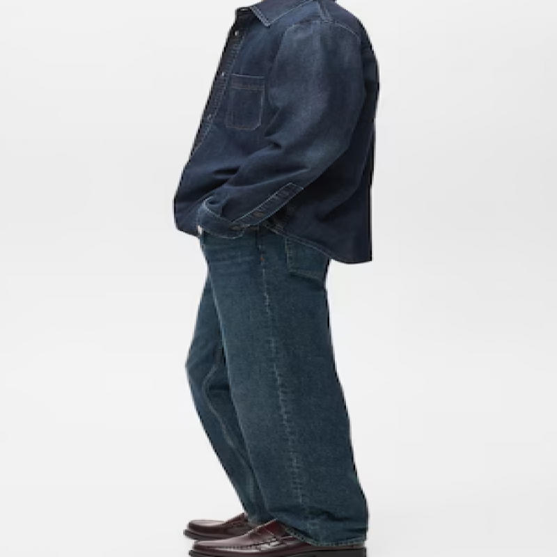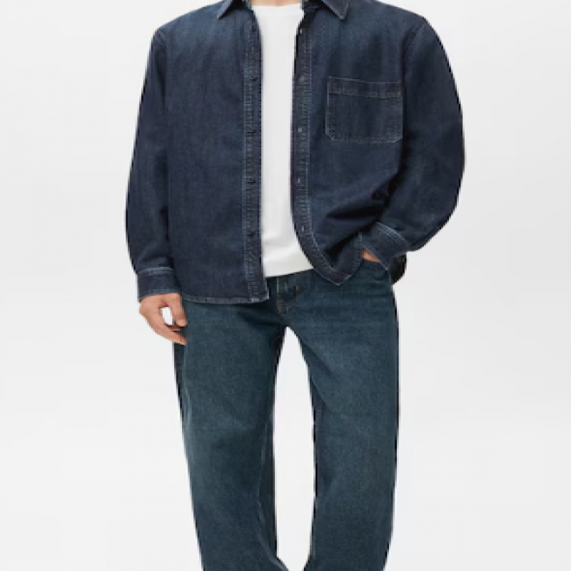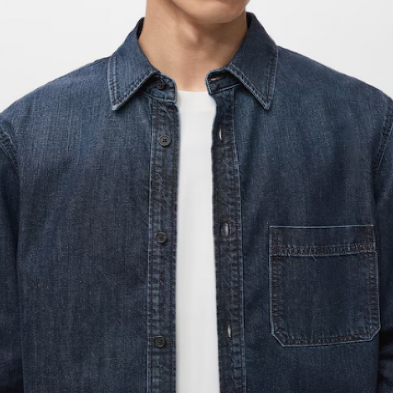 Düz kesim. 100% pamuk kumaş. Taşlanmış. Gömlek yaka. Düğmeli manşetli uzun kol. Ön düğme kapama. Göğüste yama cep. Yuvarlak etek ucu.