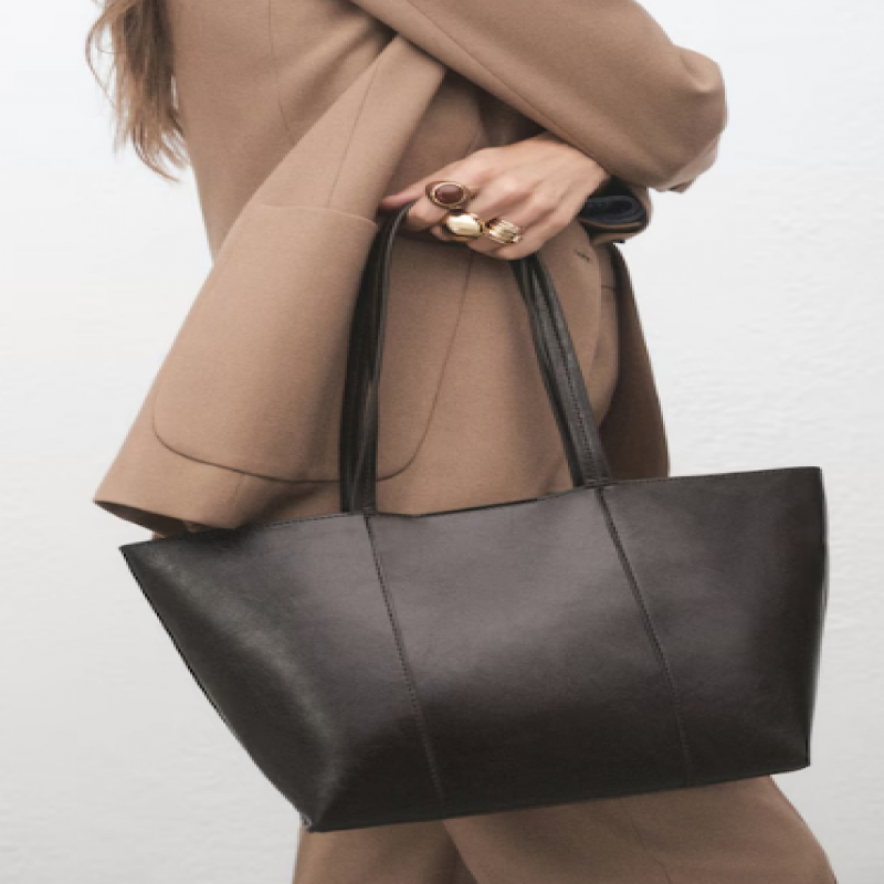 Orta boy. Shopper tarzı. İki omuz askısı. Manyetik düğme kapatma. İçi deri astarlı.
